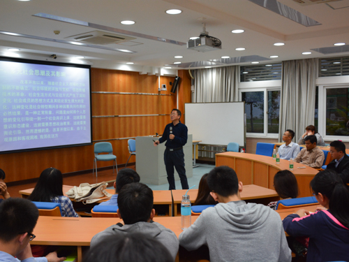时代,文化和环境的不同孕育了多元的社会思潮。谢迪斌阐述了物质主义、经济上的新自由主义和其他政治上的几种理论和思潮,并列举了生动形象的例子进行阐述。他提到意识形态建设、思想政治教育和舆论的引导对将个人思想的变化统一到一个社会共识的举措有很大的作用。