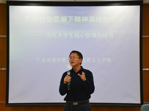 3月24日晚六点半,主题为“价值多元时代的精神守望”的大学生思想政治和综合素养提升计划讲座于9教103(丝纺讲堂)拉开帷幕。我校马克思主义学院院长教授谢迪斌教授应邀为必赢官网学子做讲座。商英学院党委副书记张林茂,团委书记万东方、16级辅导员莫小俊、“青马班”成员、入党积极分子参加了讲座。